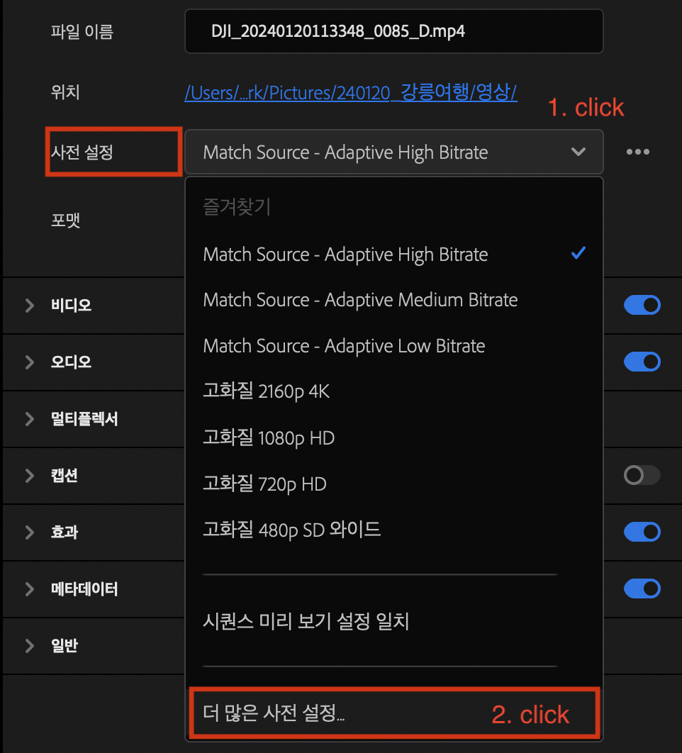 1. 파일 - 내보내기 - 미디어 선택